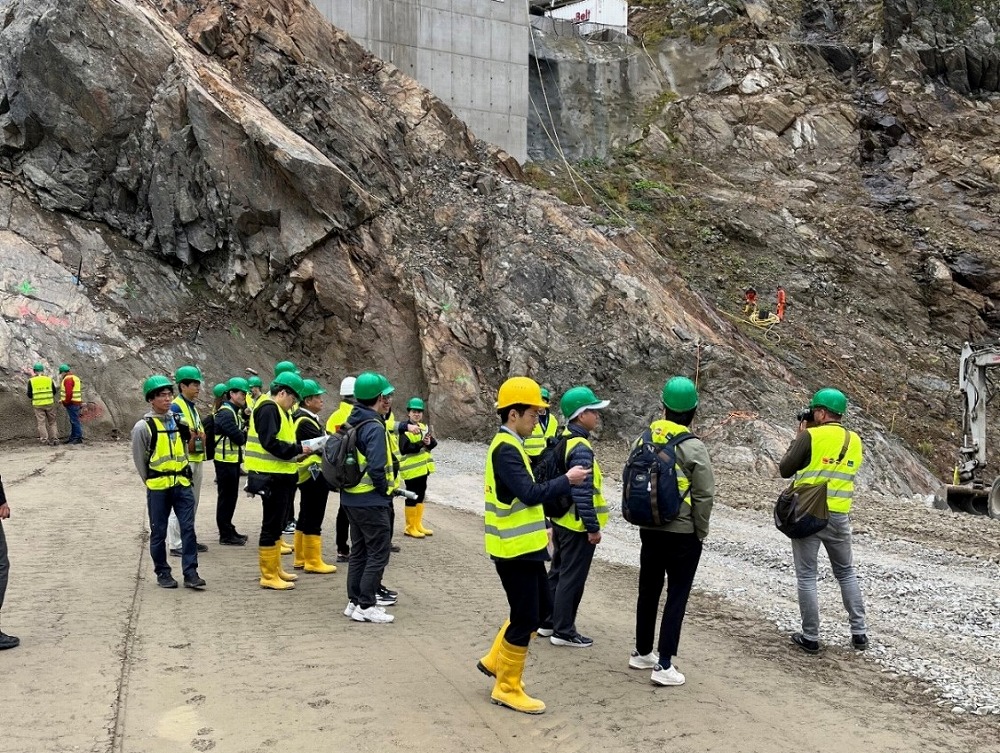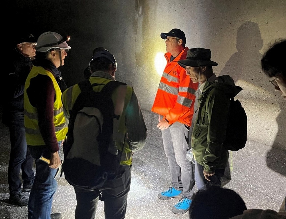 1箇所目はSBTが設置されているSolisダム(ソリス)です。管理者(The Electric Power Company of Zurich ewz)から講義を受けた後、管理者の案内でSBTの内部に立ち入り、インバートの摩耗対策などを確認できました。