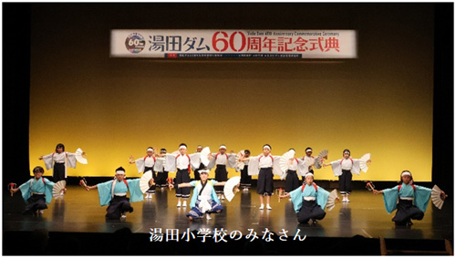 10月16日(木)の10時から湯田ダム60周年記念式典がサミットと同会場で実施しました。オープニングアトラクションは地元の小学生とその保護者で構成されている「湯田みかぐら」の皆さんによる演舞が披露されました。