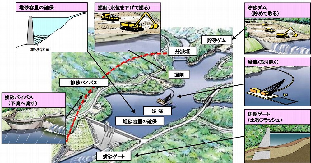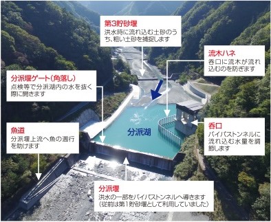 SBT(sediment bypass tunnel)は、土砂バイパストンネル(または排砂バイパス)と呼ばれているダム堆砂対策の一つです。貯水池からダム下流へ抜けるトンネルを設置して、貯水池へ流入してきた土砂を排出します。