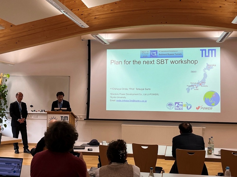 研究発表(いずれも口頭発表)は約30件で、主な内容はSBTの補修と摩耗対策、土砂輸送や下流河川環境のモニタリング結果、土砂輸送の解析及び観測手法、土砂管理戦略などでした。全体を通して、SBTに限らない、土砂管理全般の発表が多かったです。
